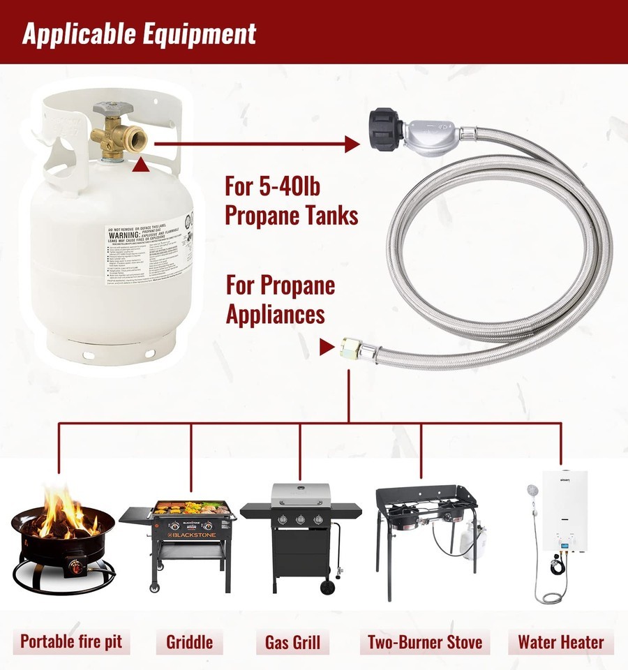 WIDELY USED - Fits for Weber, Char-broil, Nexgrill, Monument, Dyna-Glo, Brinkmann and other outdoor propane grills, as well as camp stoves, fire pits, heaters, water heaters and any propane appliance with a 3/8? male flare fitting.