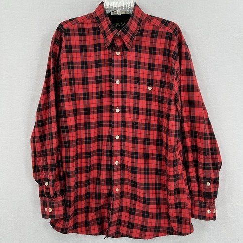 ORVIS Classic Collection Men's Sz L Red Black Plaid Long Sleeve Button Down