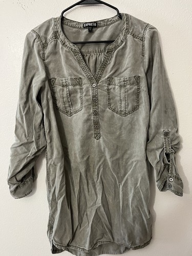 Radiate confidence in this stunning Express burnout blouse. The deep burgundy hue and intricate floral burnout pattern create a sophisticated and alluring look, perfect for any occasion. The sheer overlay adds a touch of elegance, while the roll-tab sleeves offer versatile styling. Two chest pockets and a classic button-up front provide functional detail, and the slightly crinkled texture adds a unique tactile appeal. Effortlessly transition from a chic office ensemble to a stylish evening outfit for dinner or a night out.