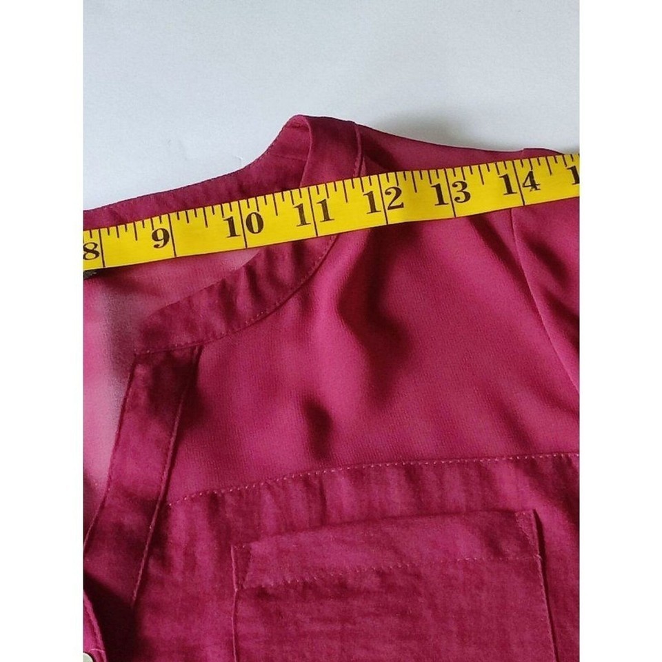 Express Sheer Burnout Blouse Top Burgundy Roll Tab Sleeve Button Up Shirt Womens