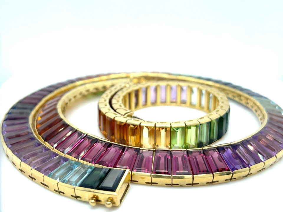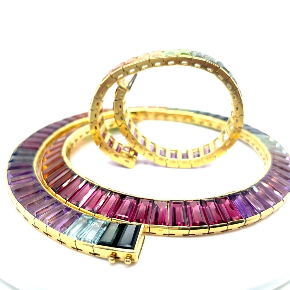 Beautiful 18k Yellow Gold Rainbow Multi-Gem Necklace and Bracelet Set
