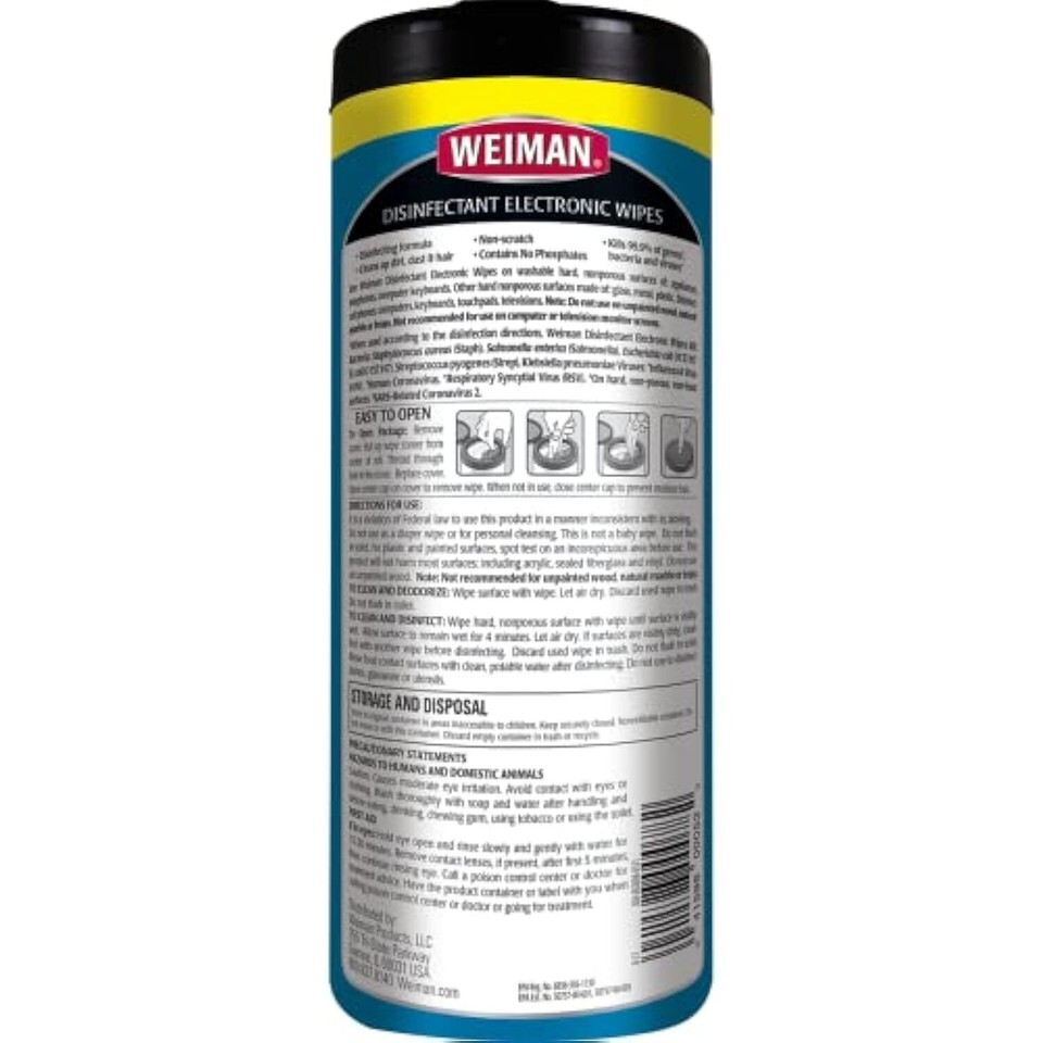 Weiman Disinfecting Electronic Cleaning Wipes For Keyboards, Tablets, E-readers,