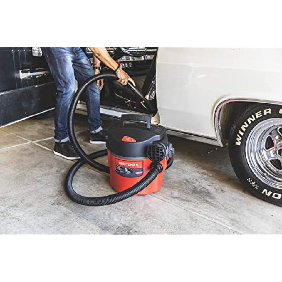 Unleash the power of a car wash in your own garage with the CRAFTSMAN 5 Gallon 5 Peak HP Wall Mounted Cleaning System. This wet/dry vac mounts to the wall and frees up valuable floor space in the garage. The vac can be easily removed from the wall and carried to other locations even throughout the home, making it a valuable household tool. Mount this vacuum to your garage wall and use the extra-long 21-foot hose to clean out your car or your workspace. The hose stores on-board and accessory storage keeps included accessories on hand for quick access.
