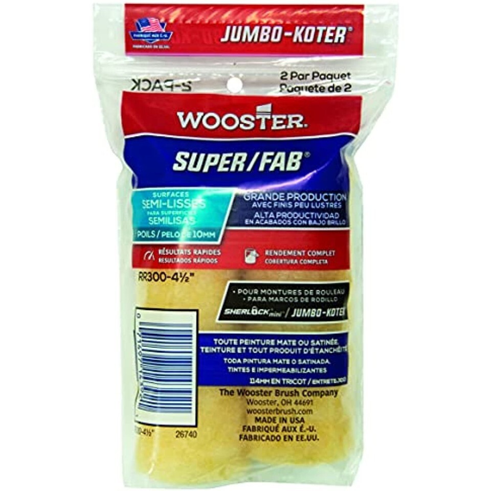 Wooster Brush RR300-4 1/2 Super/Fab Jumbo-Koter Paint Roller, 3/8 in Nap, 4-1/2