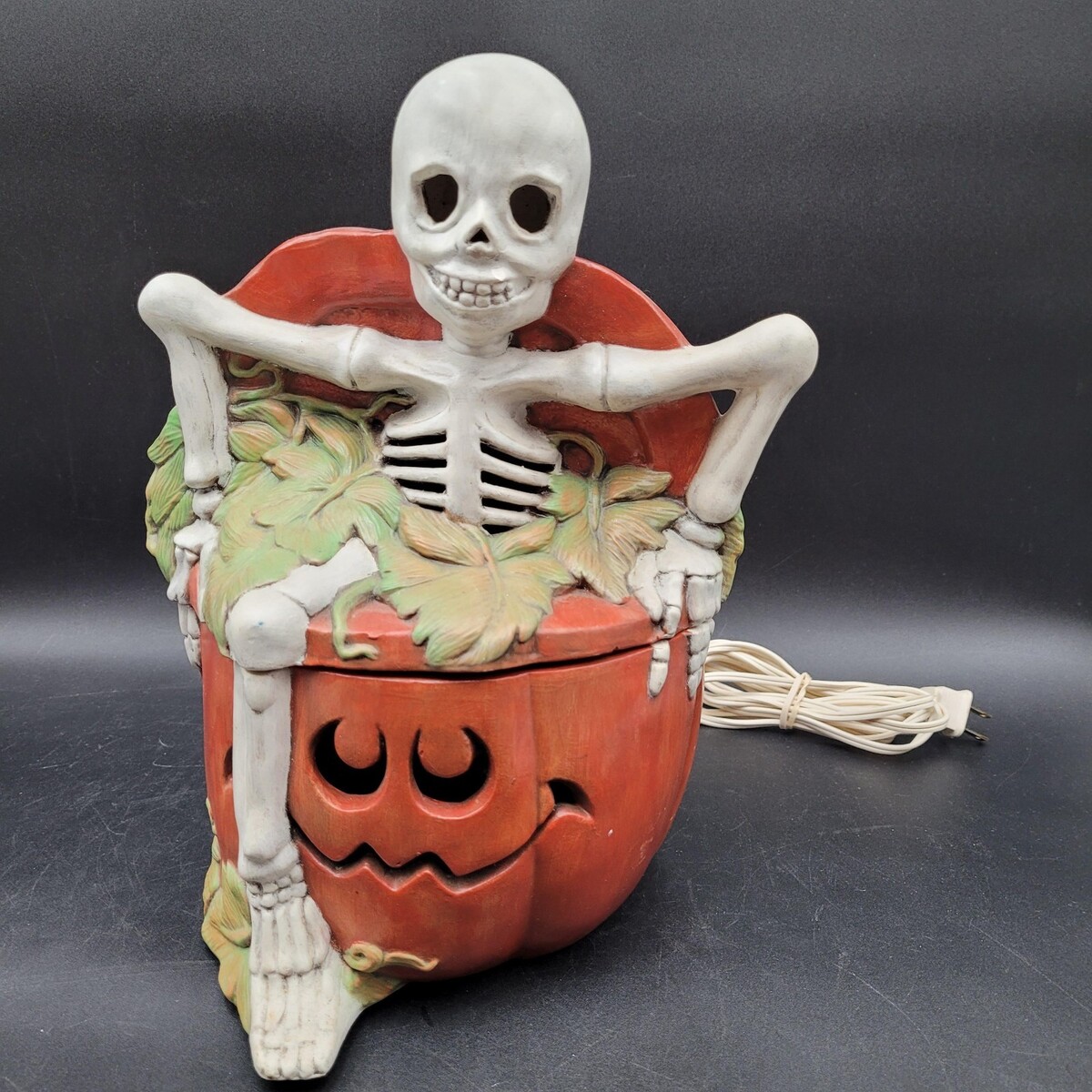 Vintage Halloween Jack-O-Lantern w/Skeleton Climbing Out Lamp Hobbyist Piece
