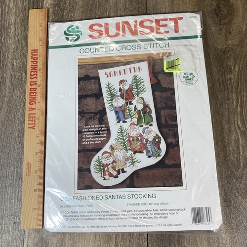SUNSET Christmas Stocking 18325 Old-Fashioned Santas Cross Stitch Kit 1991 New