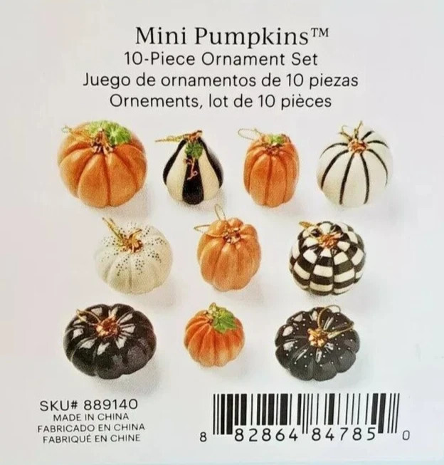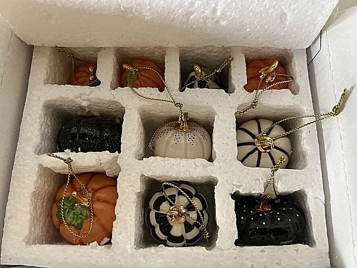 Lenox Halloween Black Ornament Tree & 10 Mini Pumpkin Ornaments Fall Gourds NEW
