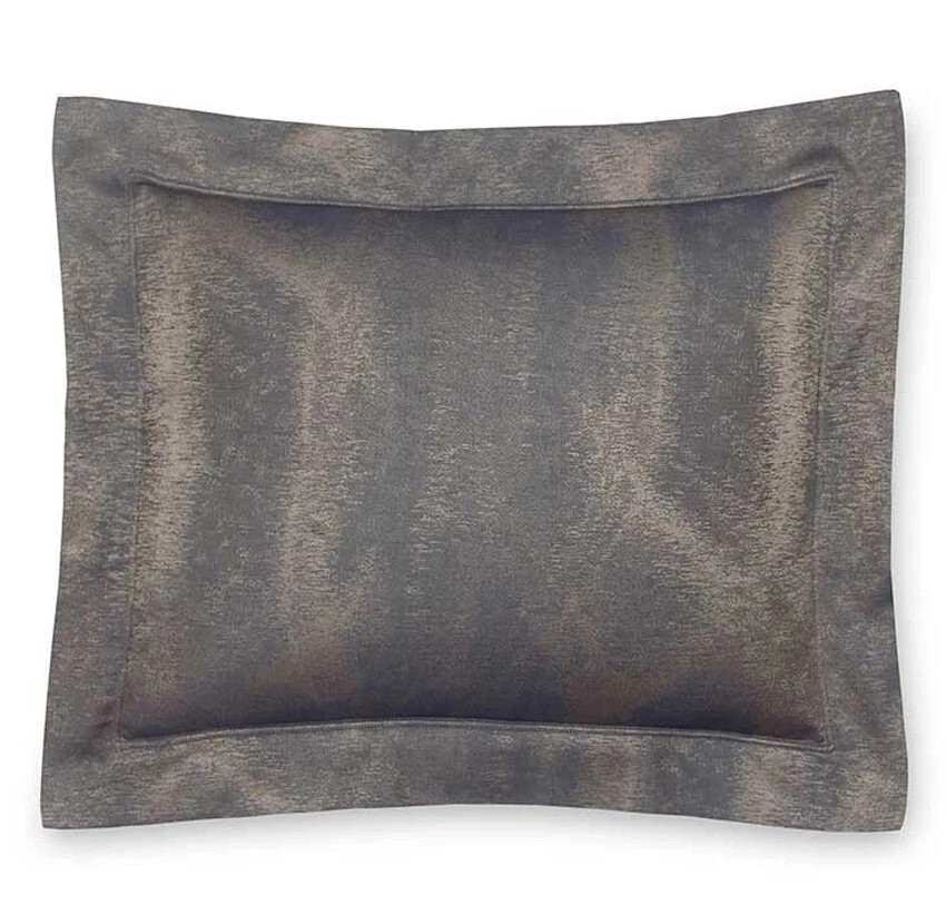 Belardo Extra-long-staple cotton bedding is both grand and graceful, inspired by the lyrical geometry and burnished metal of classic ironwork. The deep tones and light curves marry well with a subtle patina and diffuse edges, as if seen in soft focus. Soft and luxurious yarn-dyed jacquard fabric, expertly sewn in Italy into a smooth luminous sateen