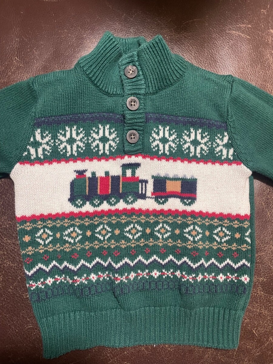 The Childrens Place Green Knit Sweater With Train & Snowflake Design - Size 12-1