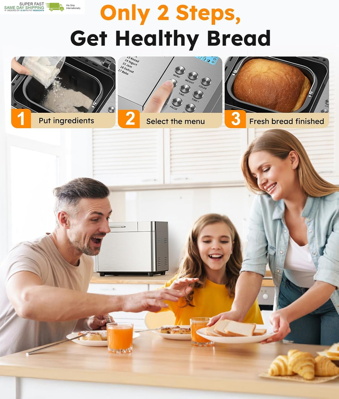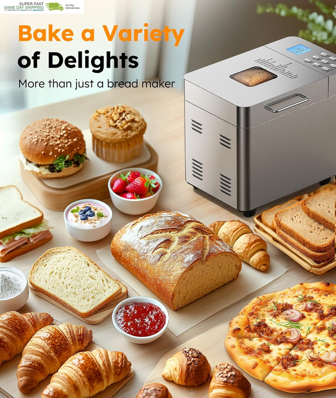 PERFECT FOR BEGINNER: Whether you're just starting your baking journey or looking for an easy way to enjoy fresh bread at home, this automatic bread maker has you covered. Simply add the ingredients, select a menu, and let it do the rest-from kneading to baking. No experience needed, just effortless homemade bread every time
