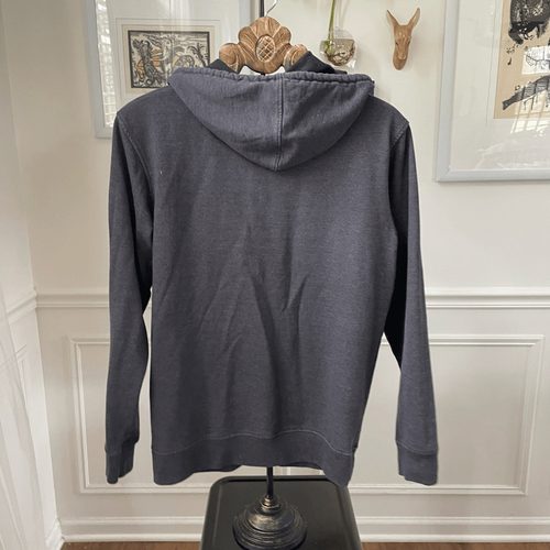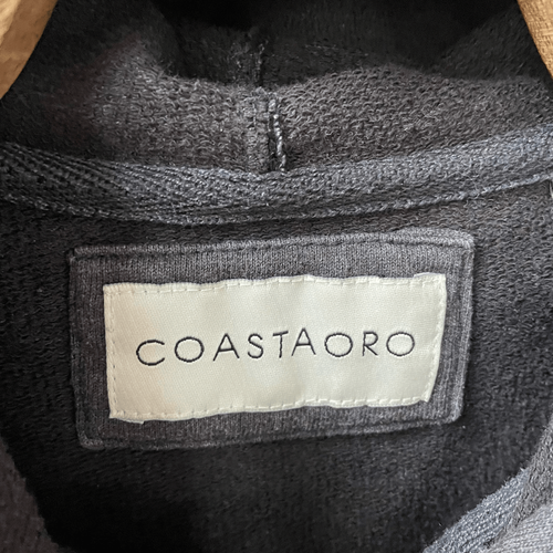 Coastaoro Ventura, dark gray, full zip French Terry sweatshirt. From Stitch Fix. Laying flat measures 27 inches shoulder to hem and 20 inches armpit to armpit when fully zipped.