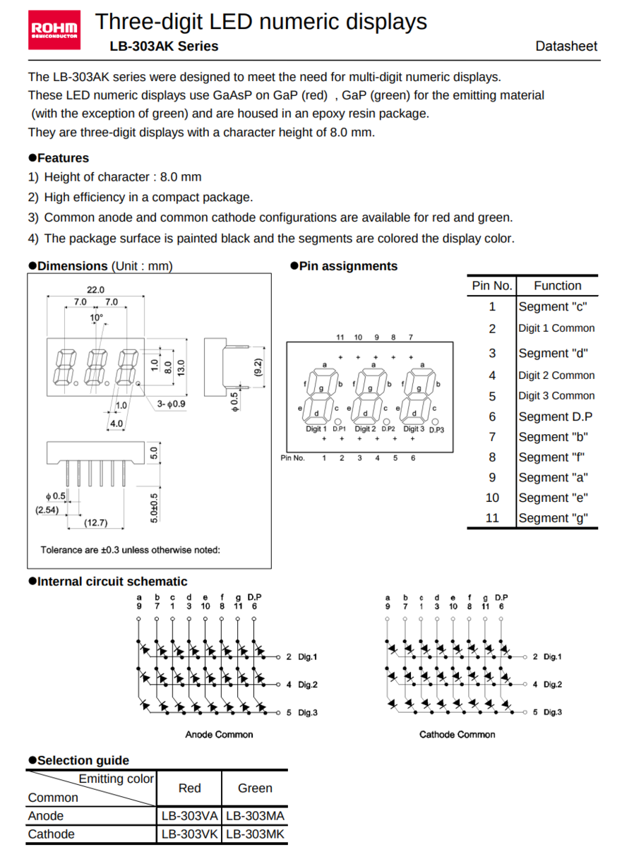 12PCS LB-303VA ROHM 3 Digit Red LED Numeric Display 7 Segment Common Anode