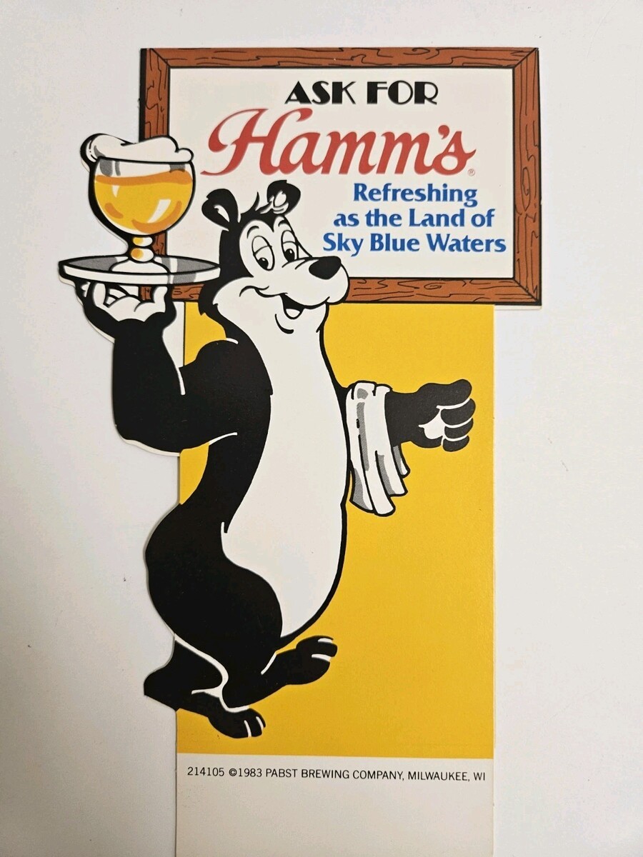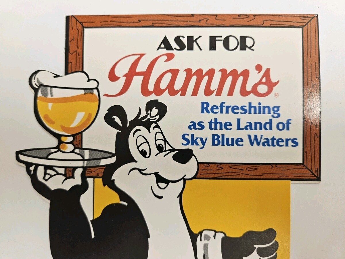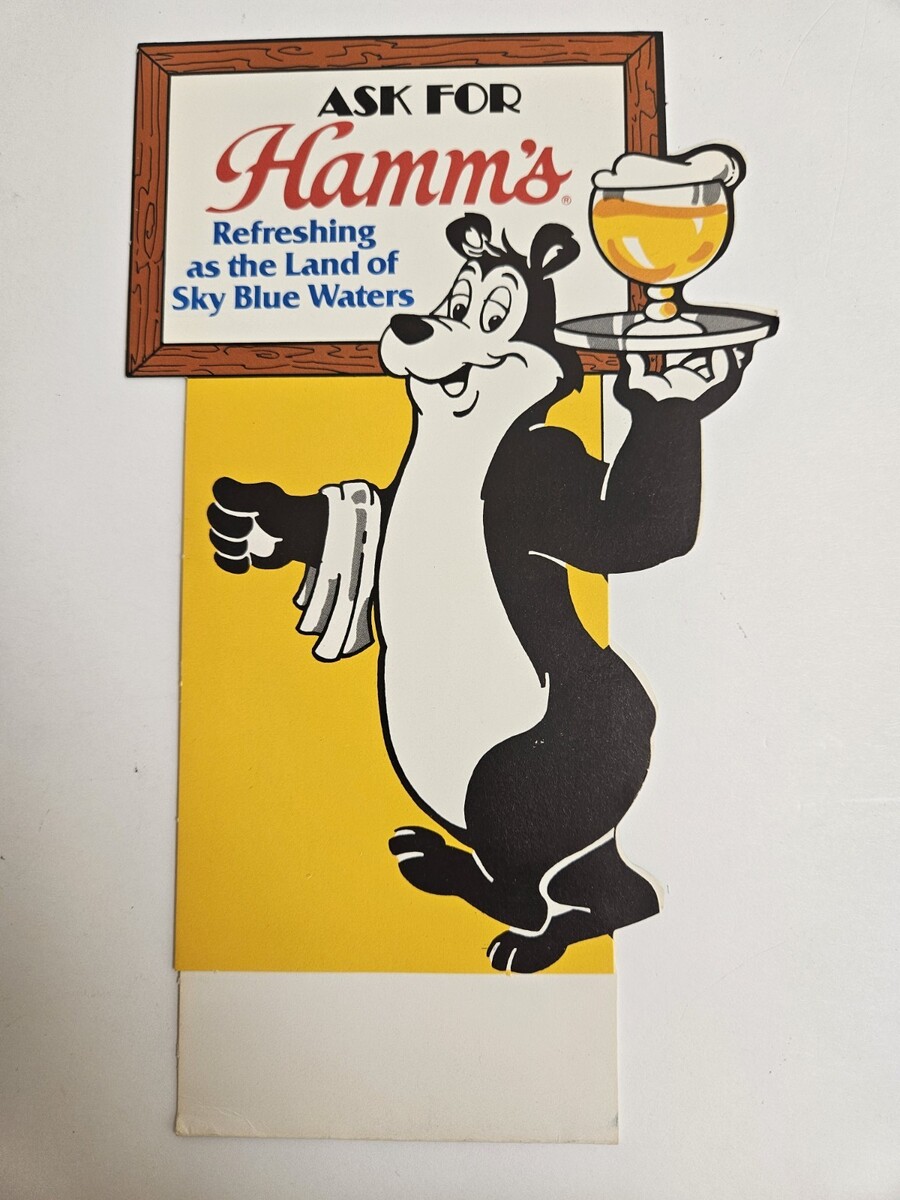 Ask For Hamm's Beer Tabletop Tent Bar Advertisement 1983 Pabst Brewing Bear Ad