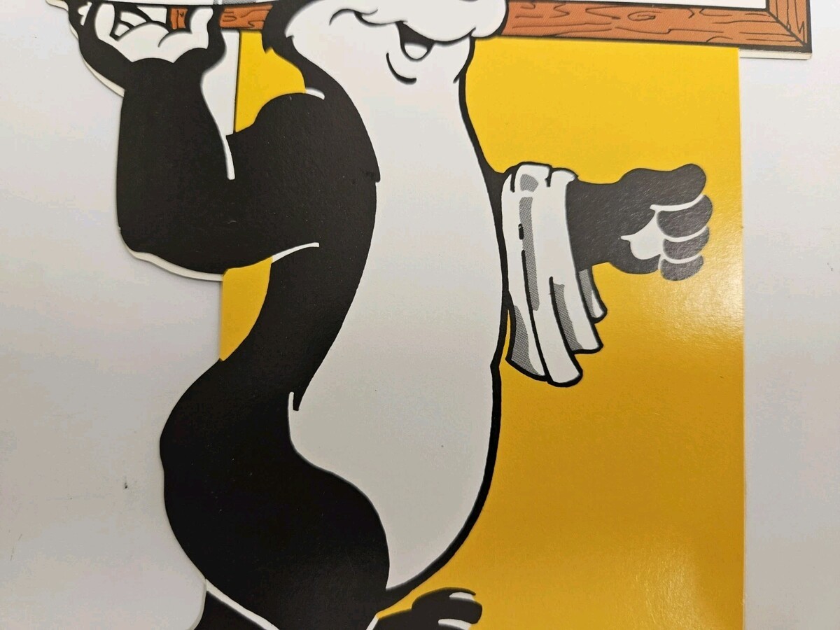 This is in excellent condition. The only small issue is a crease on the bottom. If you use this piece as intended then the crease cant actually be seen because it would be face down on a table or bar. It folds open to allow it to stand on its own. It measures 8.5" tall x 5" wide. Be sure to check out my pictures for complete description. Please contact me with questions, and be sure to check out my other items as I will combine shipments to save you money on shipping. Thank you for looking.