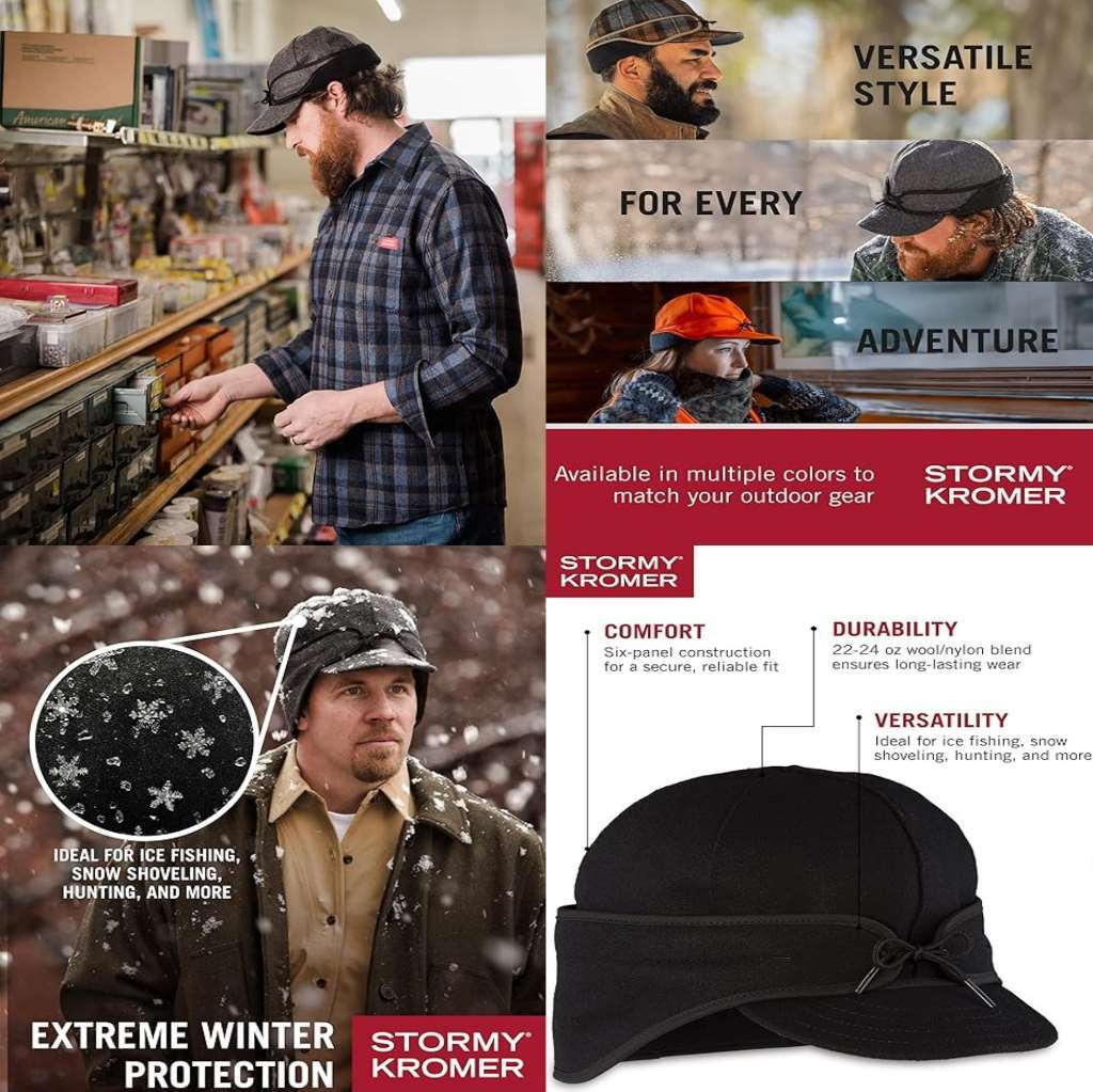 Title : Stormy Kromer The Rancher Cap , Black, 7 1/8 - Wool Winter Hat for Men, Fleece-Lined Insulated Earflap, Thinsulate Crown, Outdoor Cold Weather Cap, Six-Panel Design, Black, 7 1/8