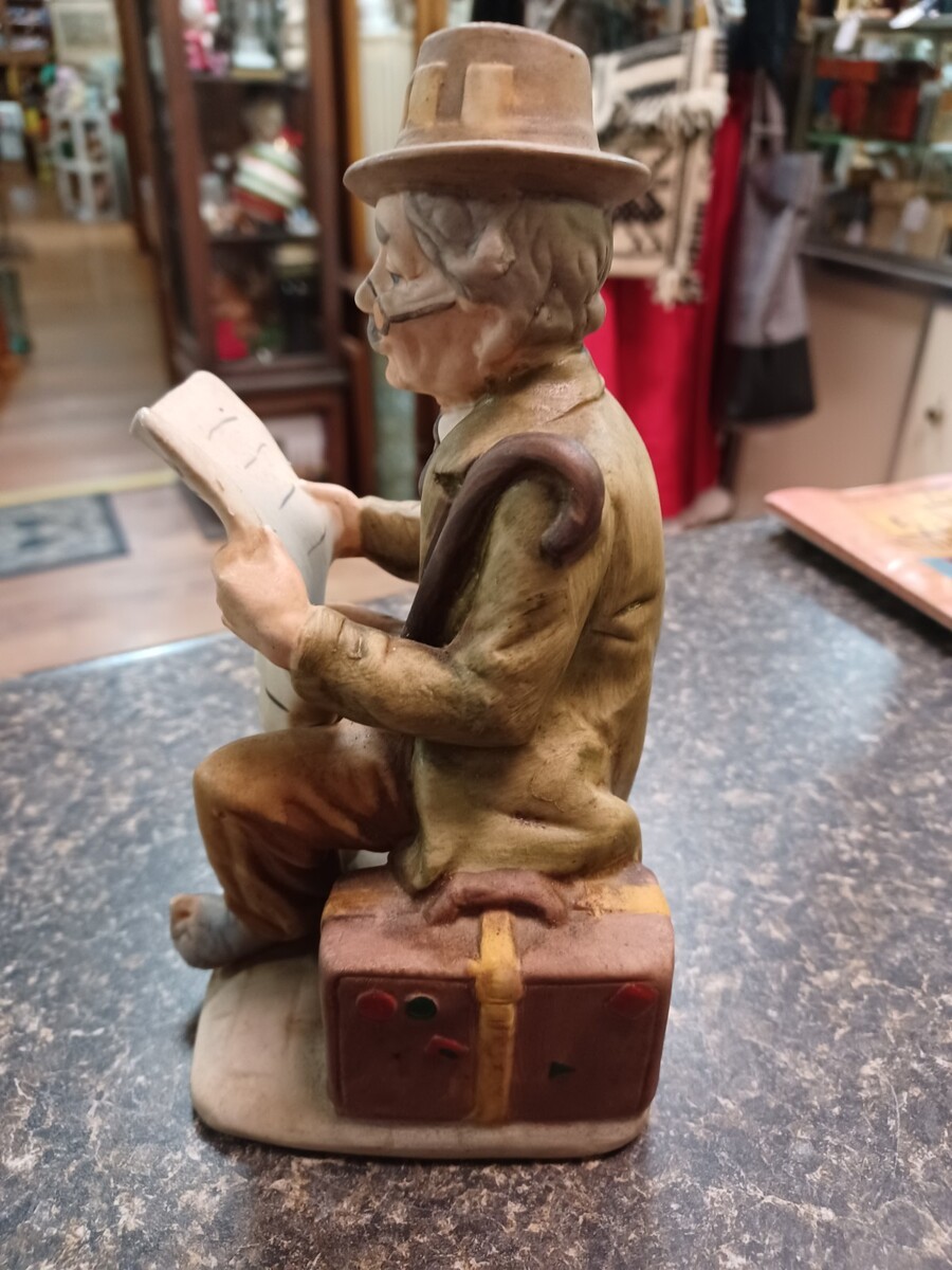Man Reading Racing Form Figurine Cigar Suitcase Holes in Socks 7"
