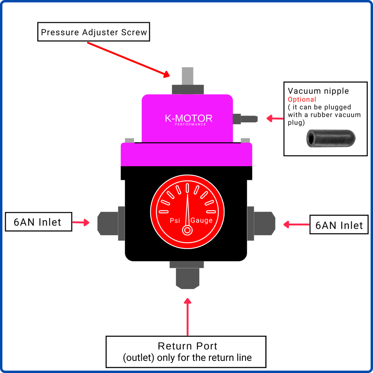 6AN Fuel Pressure Regulator Kit - with Return Universal and Adjustable | K-MOTOR