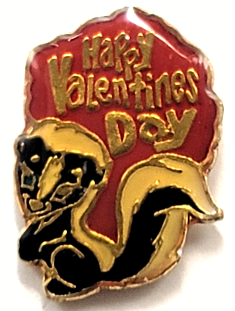 Vintage Happy Valentines Day Skunk Animal Enamel Holiday Pin 1987 AGB Atlanta GA