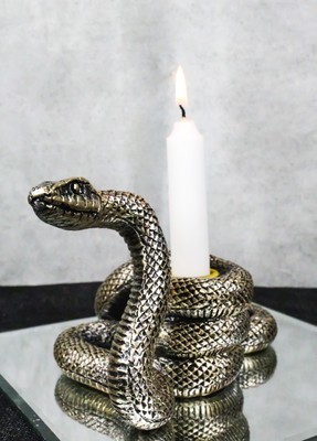 Witchcraft Sorcery Dark Magic Coiled Serpent Snake Taper Candleholder Figurine