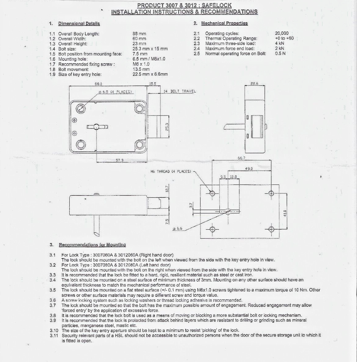 An 8 lever safe lock 3012 available with 80,000 lock combinations. Fitted with anti-pick levers as standard, this lock is manufactured without key guide pin and has been tested and certified to a VDS class 1 rating. This means the lock is suitable for use in safes and other high security applications.