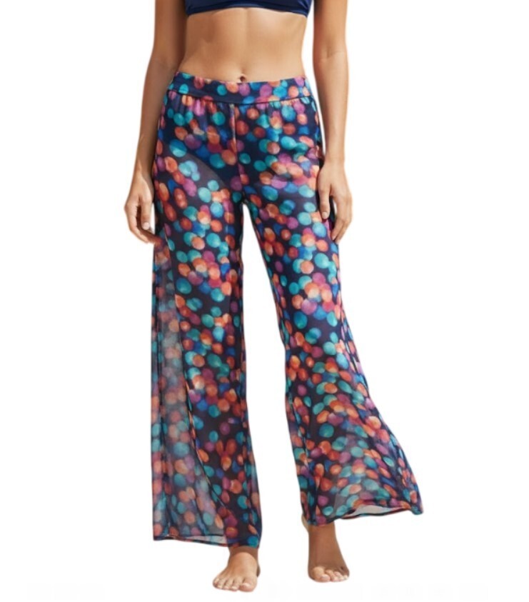 BAR III Multi-Color Polka Dot Wide Leg Sheer Chiffon Swim Cover-Up Pants (S) NWT