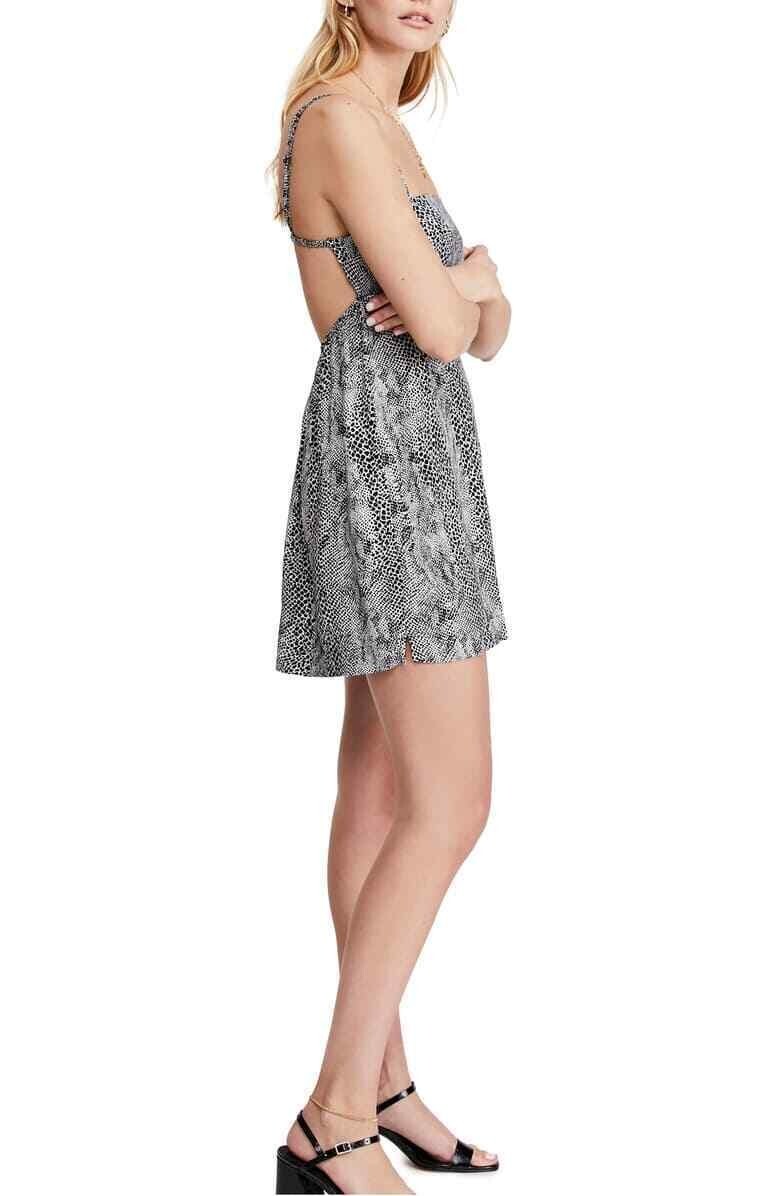 Styled with a fierce print and flirty open back, this mini dress from Free People is designed to make an impact.