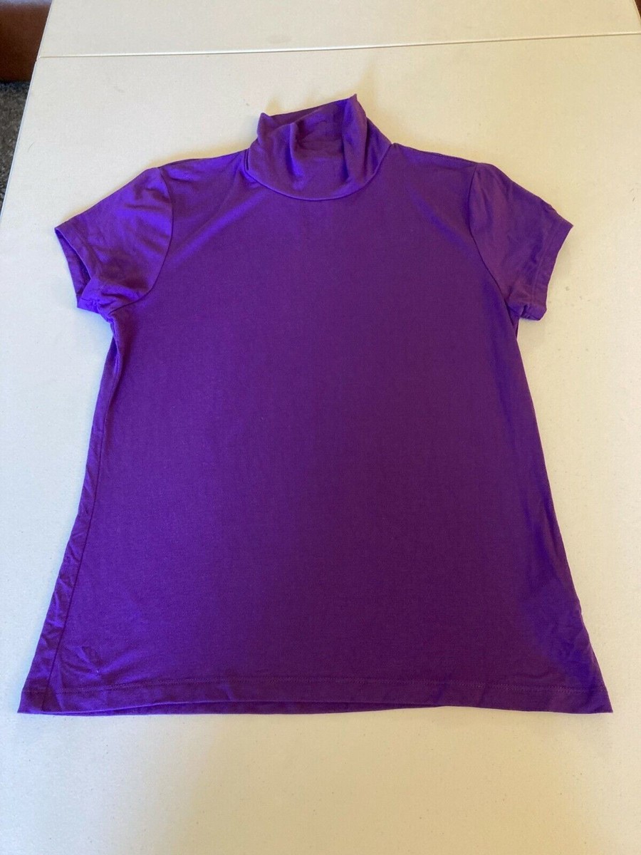 Lauren Ralph Lauren Women's Solid Turtleneck Cap Sleeve Tee Purple-Size PM
