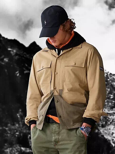 RLX Ralph Lauren RLX Cotton Stretch Ripstop Color Blocked Paneled Jacket Khaki-L