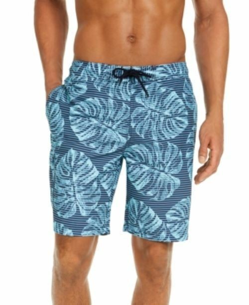 Club Room Men's Stripe Leaf-Print 9" Board Shorts Navy Combo Size Small 29-31