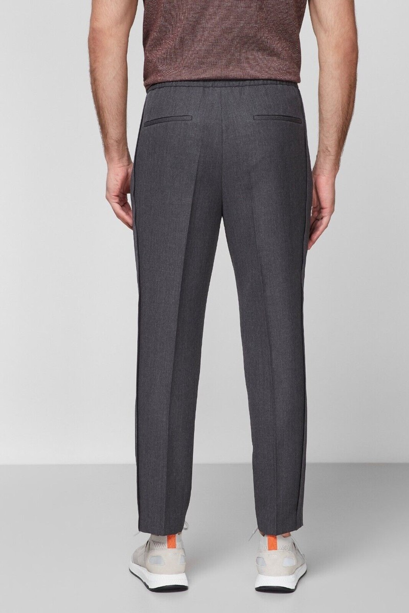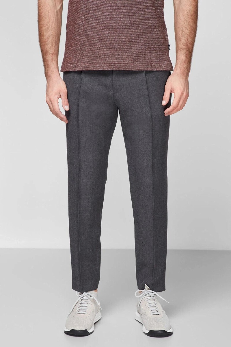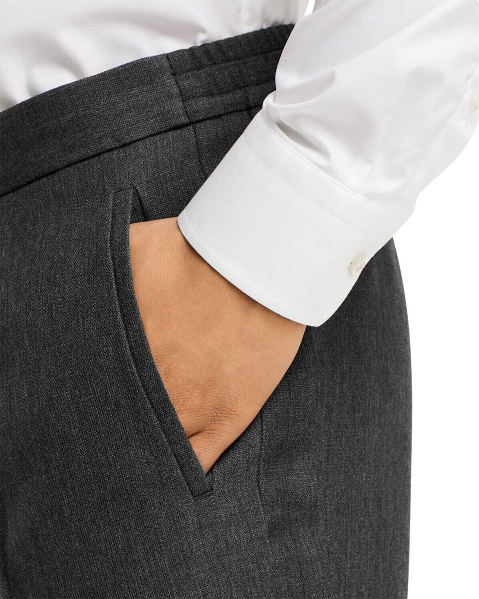 Boss Men's Hesten Peyson Straight FitVirgin Wool Pants Grey-Unfinished Hem-36R