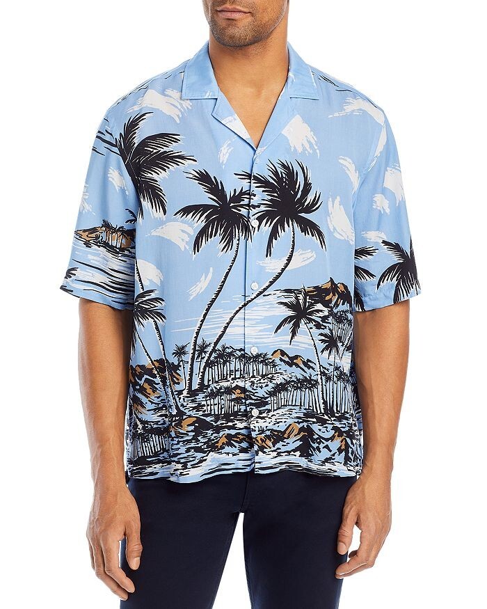 BOSS Men's Regular Fit Lars O Tropical Print Shirt in Open Blue-XL
