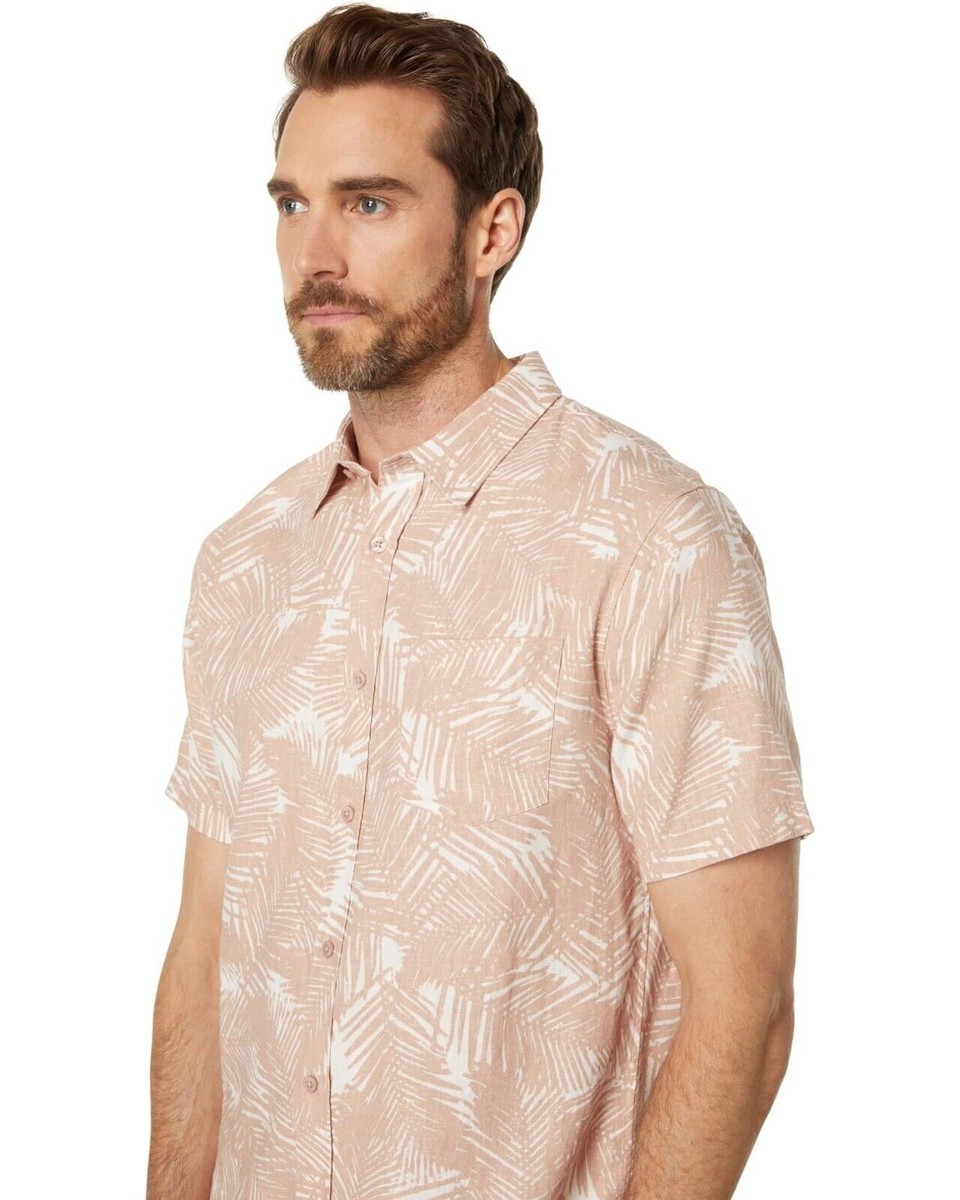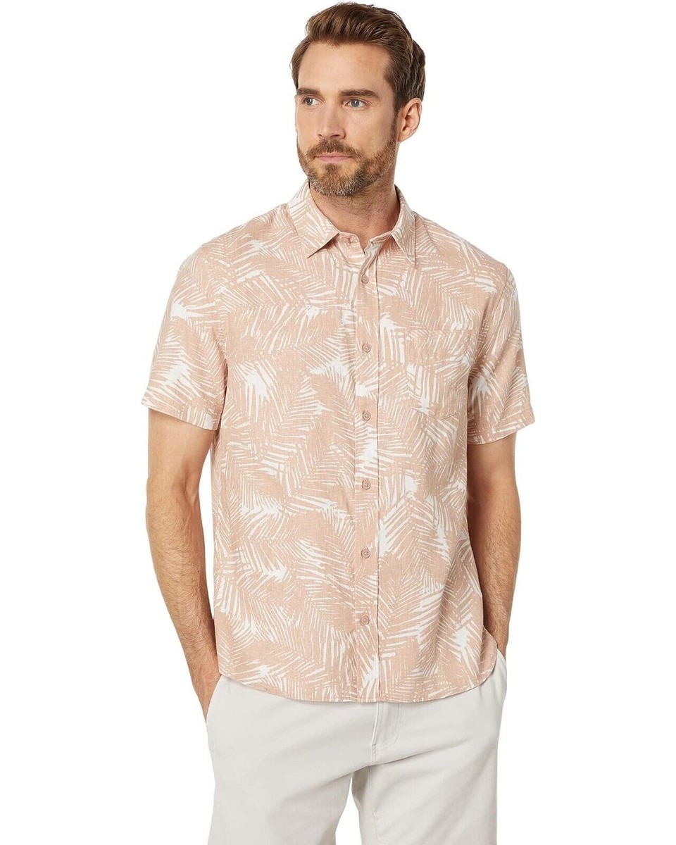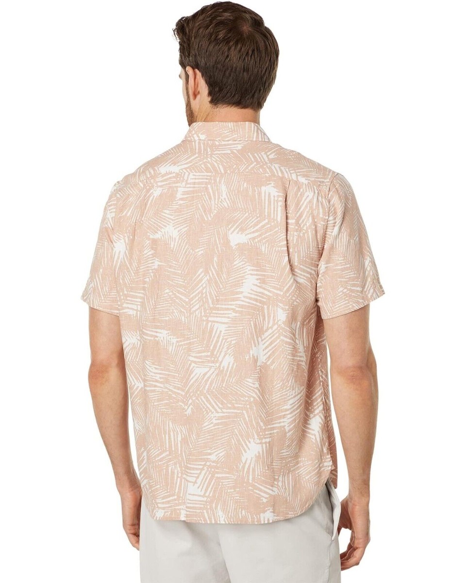 Vince Men's Linen Blend Palm Print Short Sleeve Shirt in Dk Rosewater - Size XL