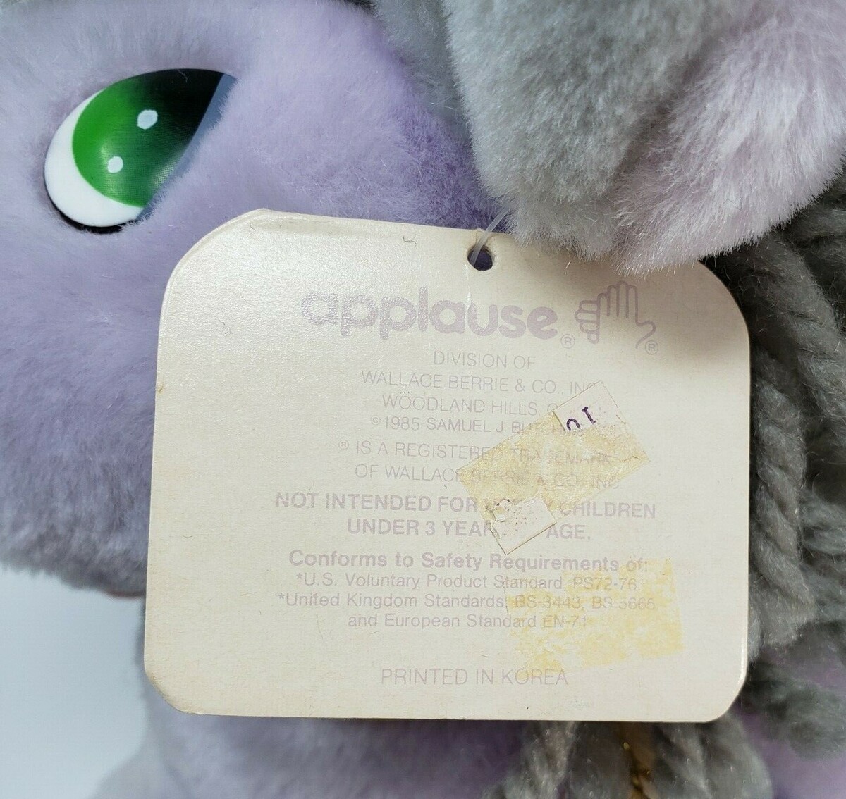 It is hard to believe he is from 1984! I had one of these as a child (small differences) and was super excited to find him again. His fur was a little scratchier than I remember and smelled odd (moth balls maybe) but he is in such good shape. I have aired him out a bit and he no longer has the odd smell. I imagine a few good snuggles will soften up his fur.