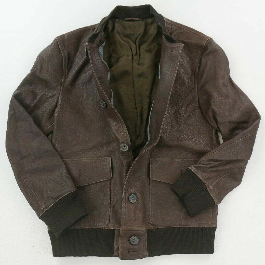 Dylan Gray Men's Leather Baseball Bomber Jacket Brown-Size 40R