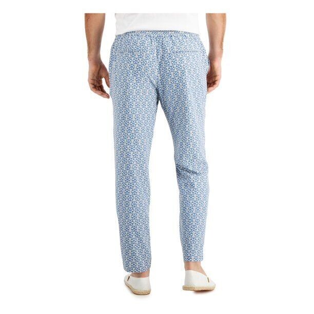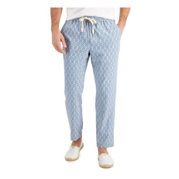 Tasso Elba Men's Medallion Print Silk Blend Drawstring Pants Blue/Grey Combo-Lrg