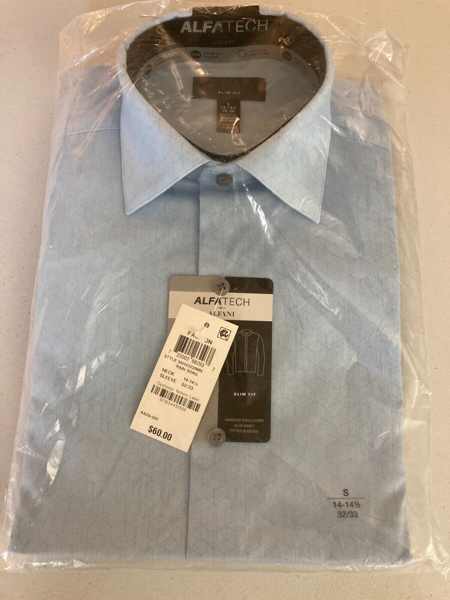 Alfani Men's Reg Fit 2-Way Stretch Performance Geo Dress Shirt Blue-14-14.5 32