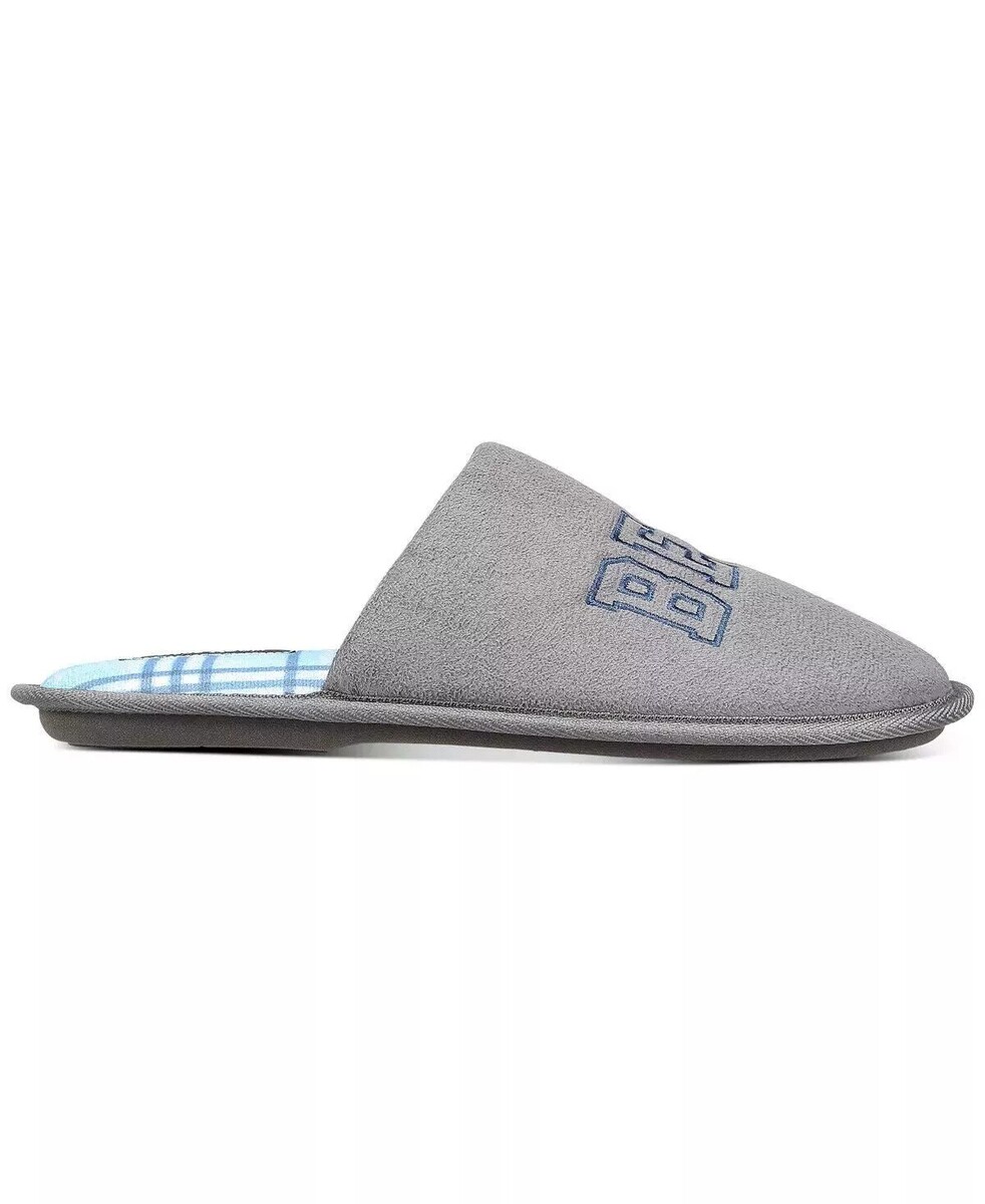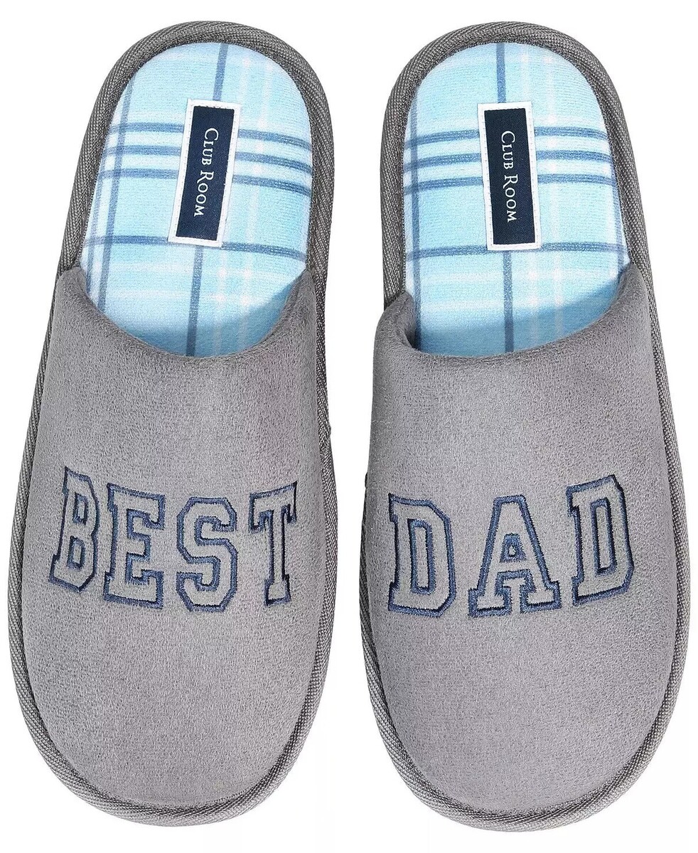 Club Room Mens Best Dad Embroidery Faux Suede Slippers Gray-Small 6-7