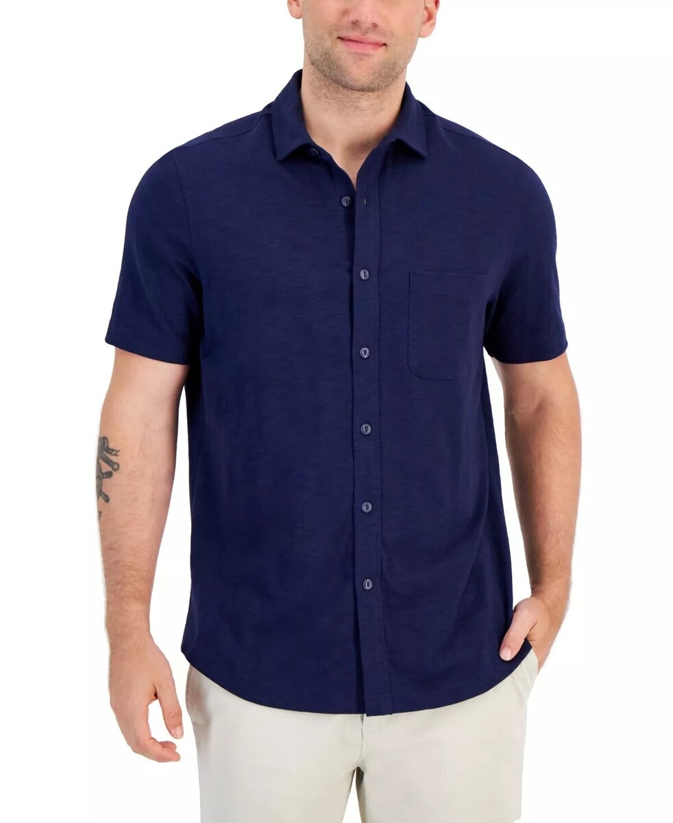 Club Room Men's Regular-Fit Textured-Knit Shirt Navy Blue-Small