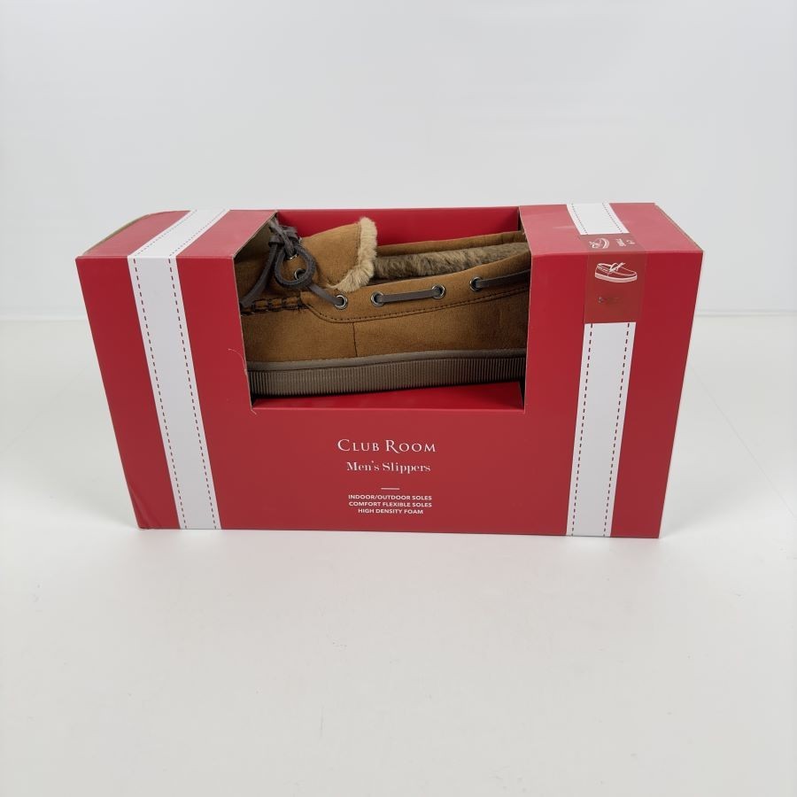 Club Room Men's Moccasin Slippers in Tan-Small 6-7