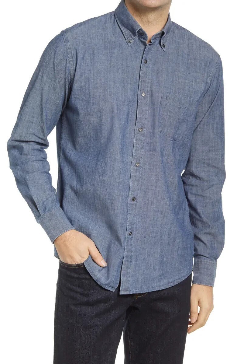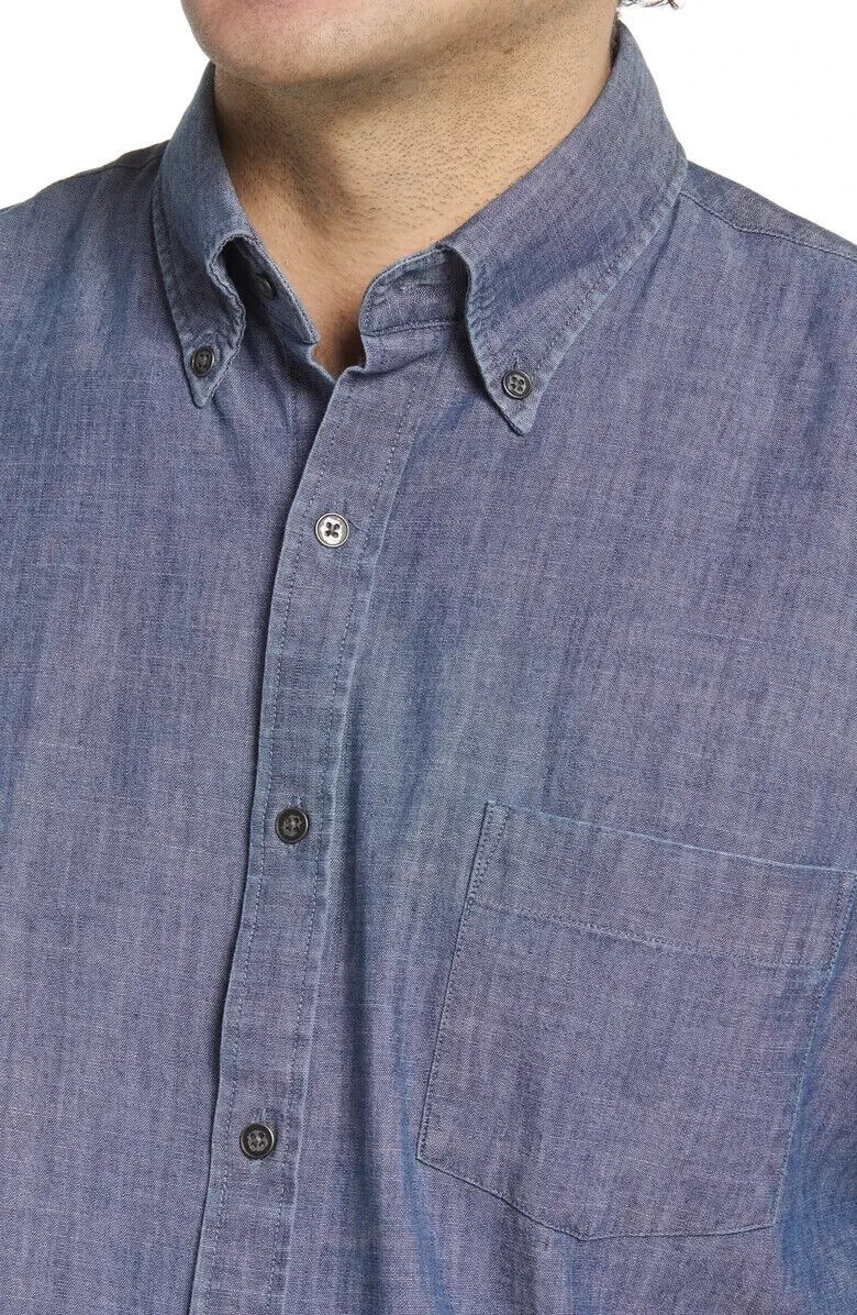 Peter Millar Men's Tamworth Chambray Sport Shirt in Indigo Blue-Size Small