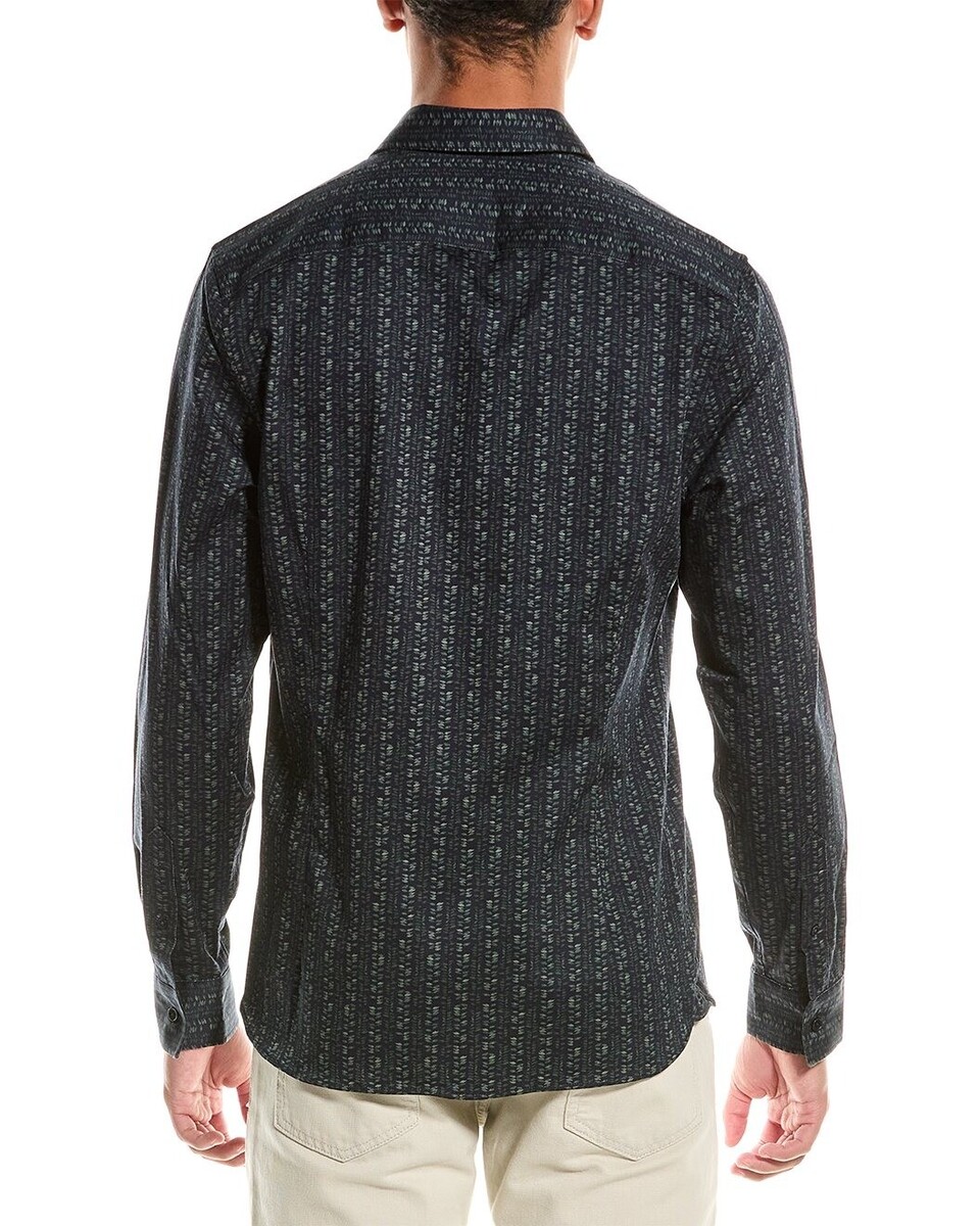 Ted Baker London Dunsop Slim Fit Ditsy Leaf Stripe Stretch Shirt Navy-Size 3 Med