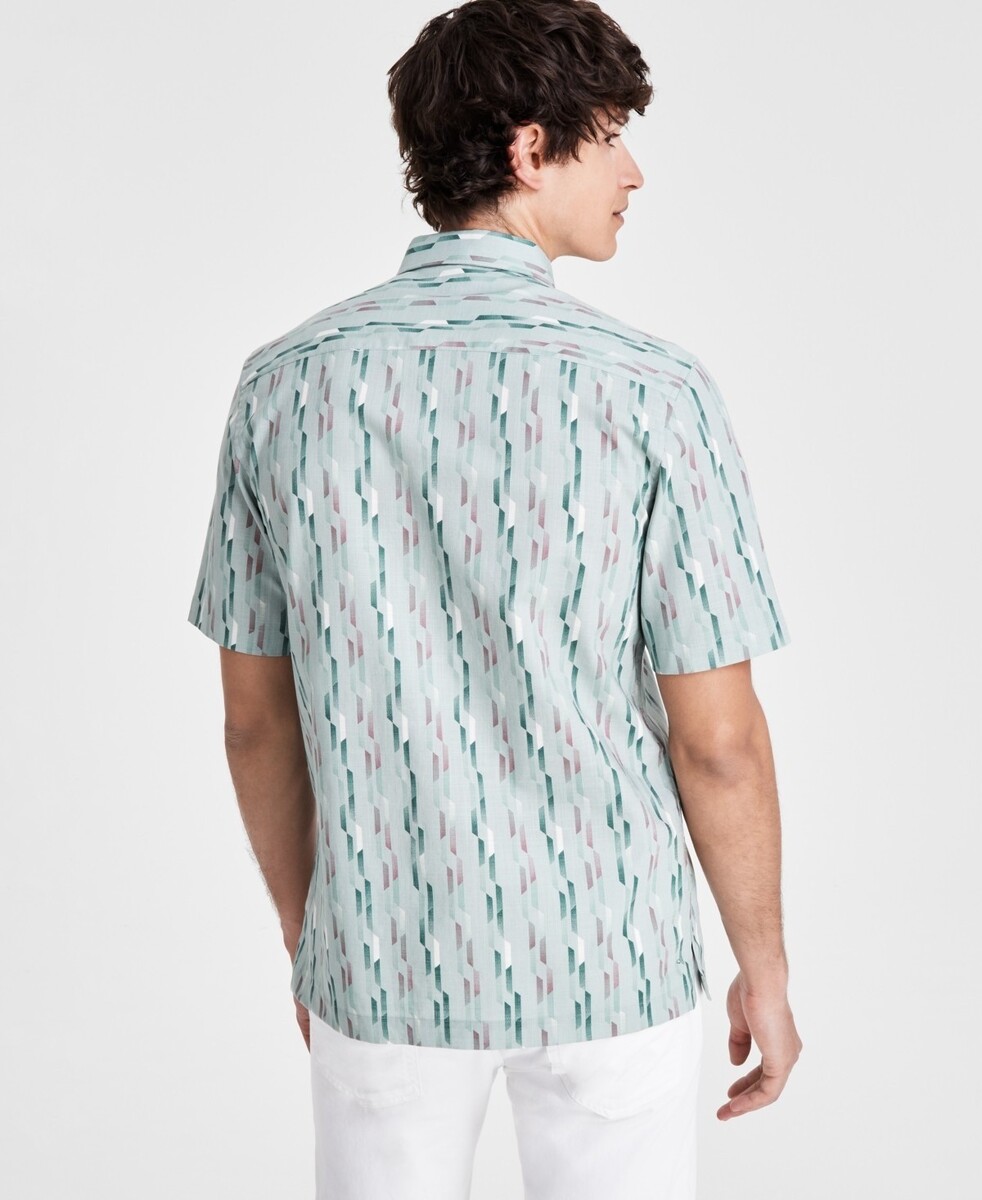 Alfani Men's Nightfall Regular-Fit Geo-Print Button-Down Shirt Green Multi-Small
