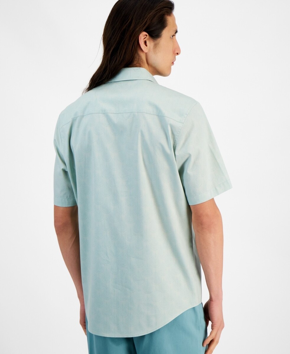 Alfani Men's Fern Regular-Fit Stretch Geometric Poplin Shirt Green-Small
