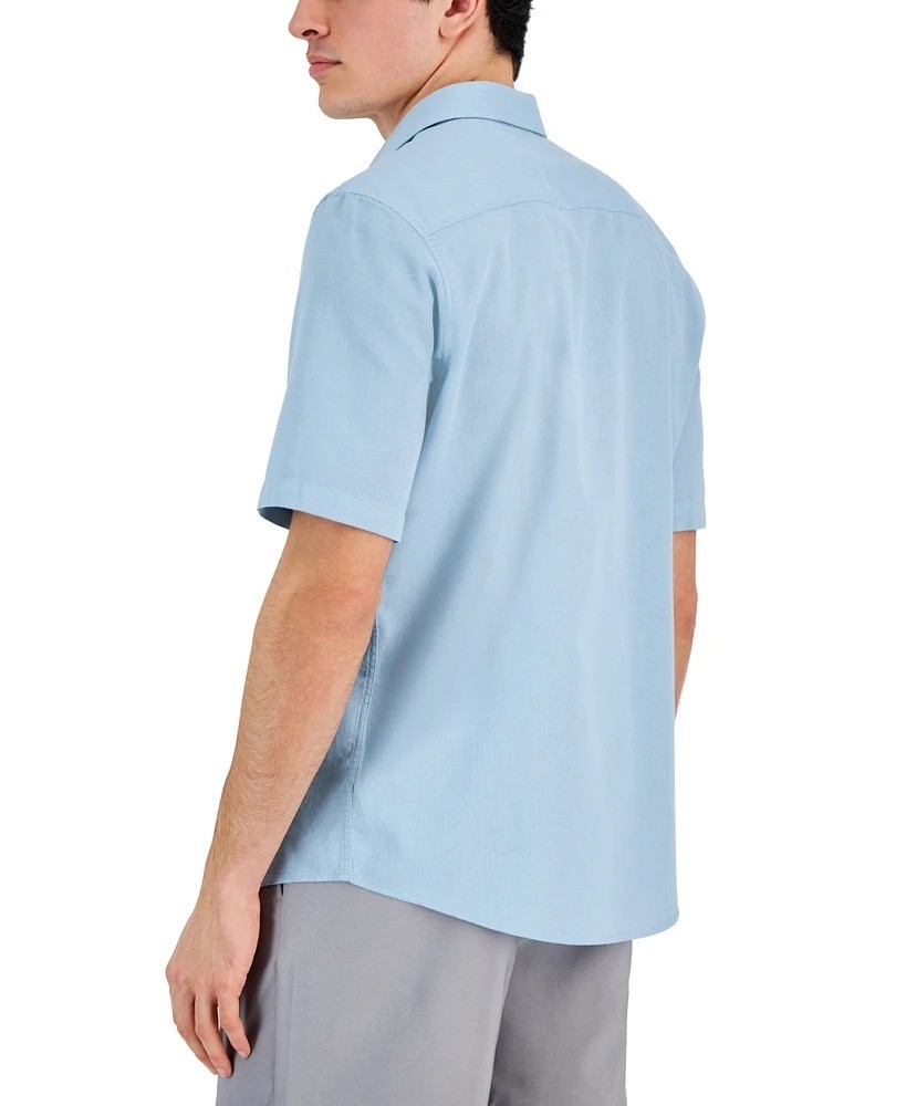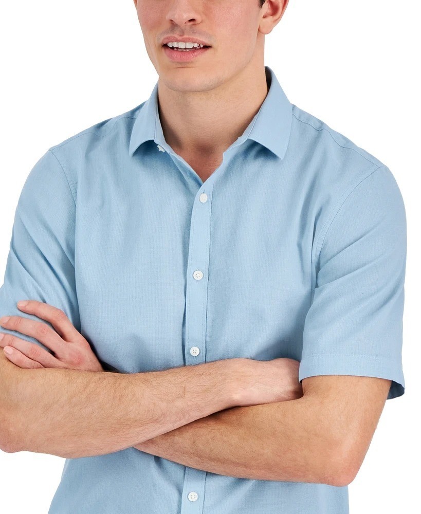 Alfani Men's Short-Sleeve Solid Textured Cotton Woven Shirt Twill Blue-Small