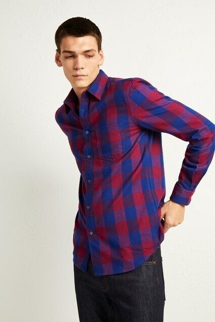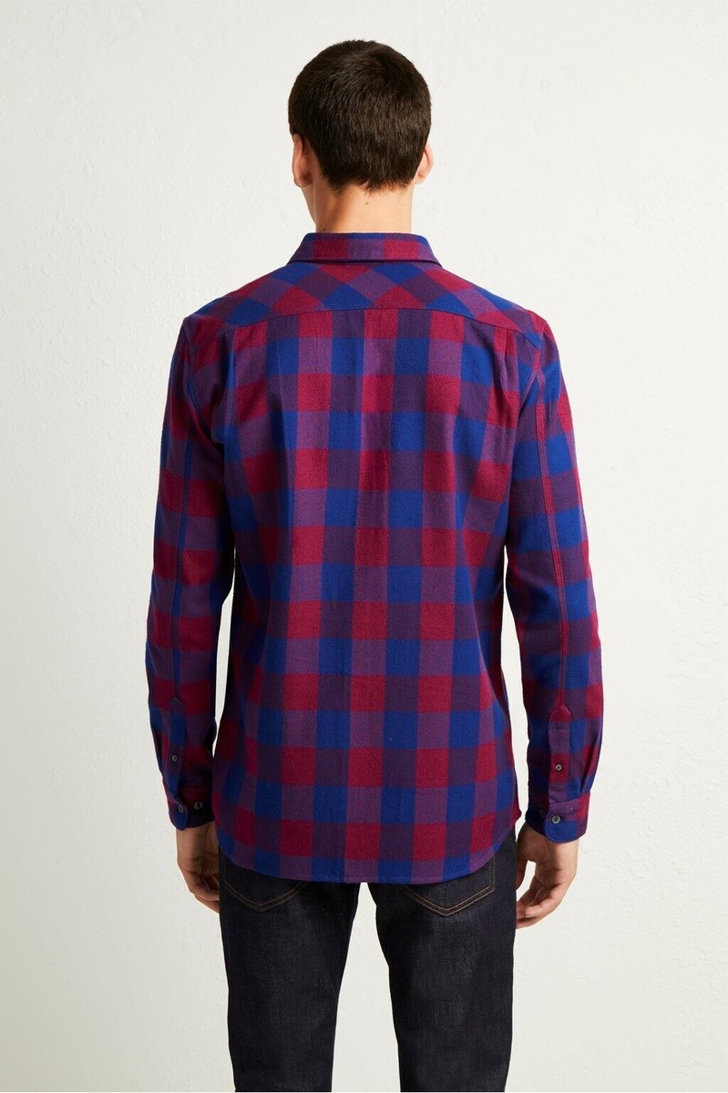 French Connection Kahama Flannel Check Shirt Plum/Blue-Size Small