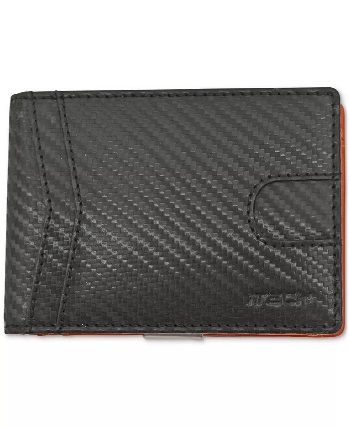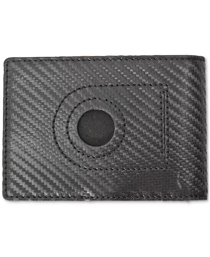 Modern innovation comes to your wallet with this bi-fold from iTech. It blocks both RFID and NFC to help prevent data theft, and it includes a slot for an AirTag for those times when you need tracking.Product FeaturesDimensions: 4-1/2"L x .37"W x 3"HInterior: RFID and NFC blocking; six card slots; money clip; ID window; AirTag slot (AirTag not included)Shell: Liquid Carbon Fiber leather; lining: polyesterSpot cleanImported