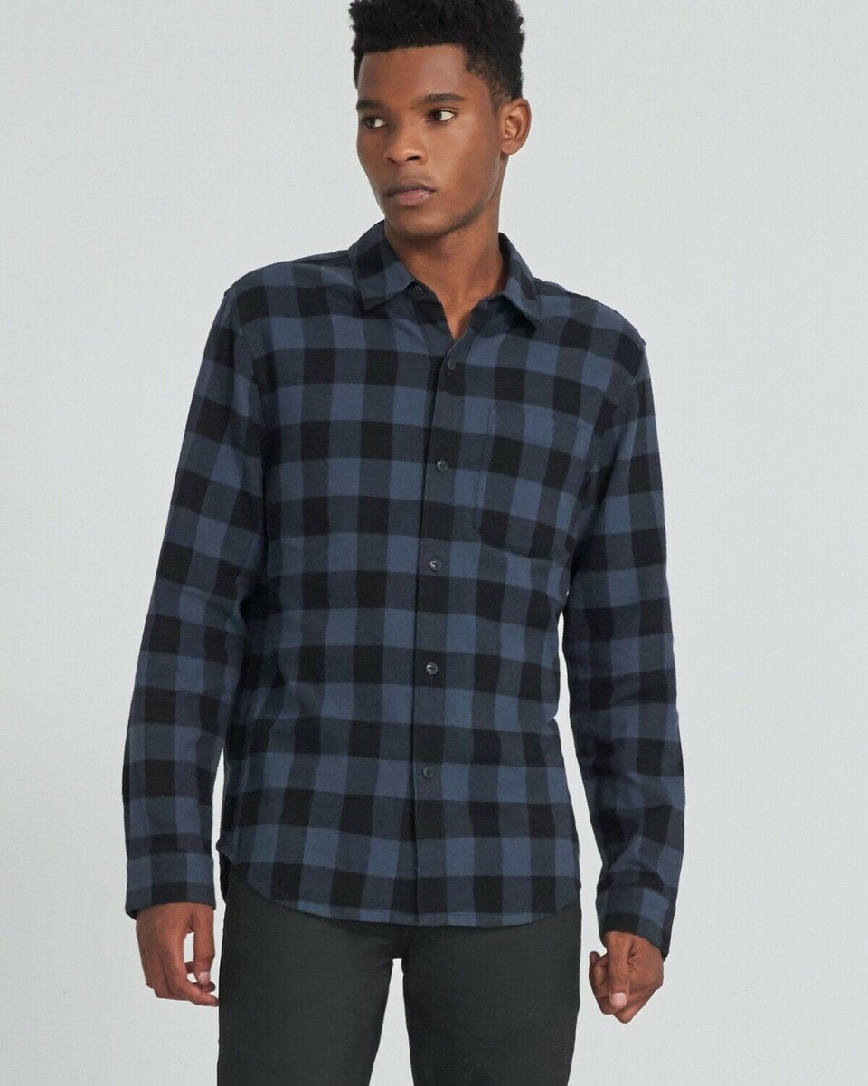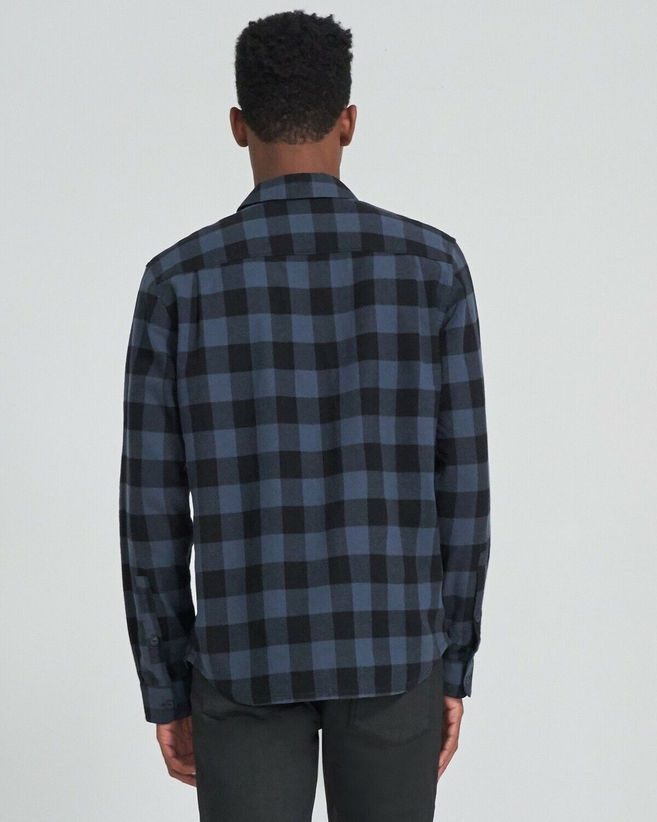J Brand Mens Button-Down Check Print Casual Shirt in Blue Night/Black-Medium
