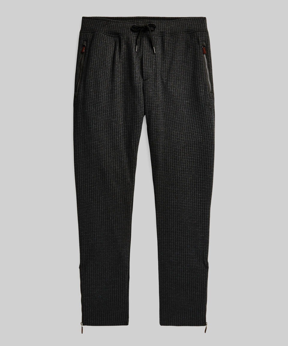 Polo Ralph Lauren Men's Herringbone Double-Knit Jersey Jogger Pants - Dark Granite Hthr DogtoothPolo Ralph Lauren's herringbone-print jogger pants are crafted with double-knit jersey that is peached for extra softness.Product FeaturesSize 2XL has an approx. 44-46" waist 12" rise; all sizes have an approx. 29" inseamElastic drawstring waistbandSewn flyTwo front waist zip pockets; back right patch pocketVented hems with zip closuresSignature embroidered Pony at the left hipCotton, viscose, nylonMachine washImported