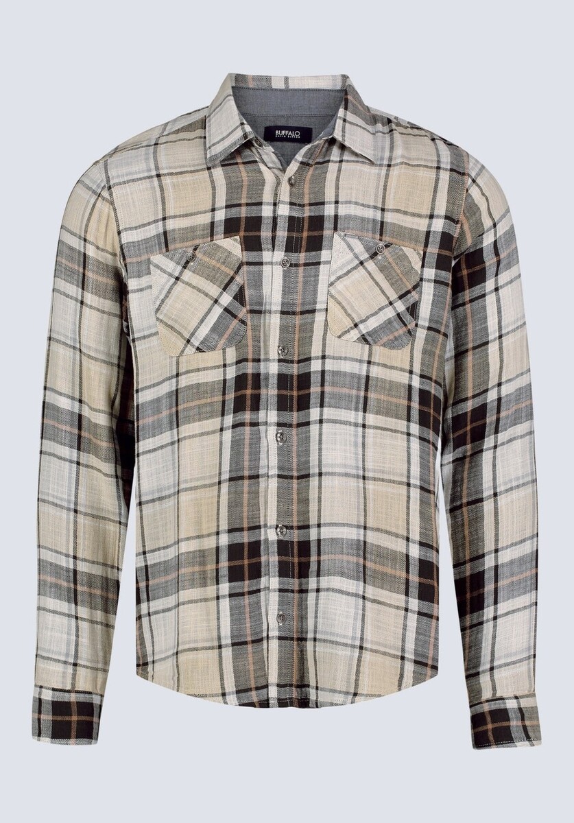 Keep it classic with this comfy plaid shirt from Buffalo David Bitton.FeaturesRegular fitPoint collar; front button closuresChest patch pocketsPlaid print100% cottonMachine washImported