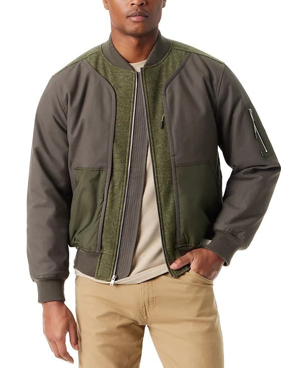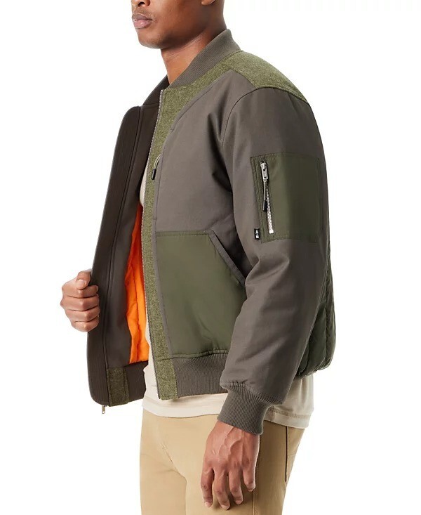 Bass Outdoor Bomber Jacket Mens Small Green Hero Mixed Media Zip-Front Bomber